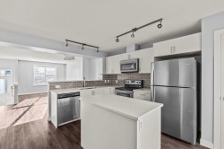 Welcome to 4 Evanscrest Gardens NW, a bright and spacious 3-bedroom, 2.5-bathroom townhome in the vibrant community of Evanston. Rarely do units with this desirable floor plan come available in the complex! The main floor offers a practical and open layout, perfect for daily life and entertaining. Large windows throughout the home ensure every room is filled with natural light. The stunning kitchen features a neutral colour palette, light modern cabinetry, quartz countertops, stainless steel appliances, a pantry and a generously sized island, making meal preparation a delight. Off the kitchen is the sliding patio door to access the raised patio, a perfect spot to enjoy a morning coffee. A walk-in storage closet located underneath the stairs and a 2-pc guest bathroom complete the main level. The primary suite is a true retreat on the upper level, featuring a private 3-pc en-suite bathroom and a generous walk-in closet for all your essentials. Down the hall is the 2nd full bathroom and two additional bedrooms that provide ample space for family, a home office or guests. Enjoy the convenience of a double attached garage with a brand new garage door installed in November 2025. The partially developed basement, located off the double garage is an excellent storage area, flex space and laundry room. Step outside to the fully fenced, south facing, low maintenance patio. This is the perfect place to relax or bbq (gas line hook-up and electrical plug-in) while looking onto the central courtyard. Evanston is a vibrant neighborhood with all of the amenities you need within easy reach, peaceful walking paths, plenty of green spaces, shops, cafes and schools. At 4 Evanscrest Gardens NW, you're not just finding a home, you're joining a family-friendly community.