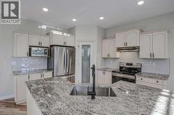 Prestwick Estates – Beautiful 3 bedroom, 2 ½ bath home with an oversized double garage and a self-contained legal one-bedroom carriage suite. The one bedroom legal carriage suite is a great mortgage helper, recently rented for $1375/month which covers $260,000+ in mortgage payments at today’s rates. Lots of recent upgrades throughout: Brand new 50-year shingles on house and garage, new interior paint, carpets, lighting, granite counters, refinished hardwood floors etc. The main floor features 9-ft ceilings, a large kitchen with new granite countertops, stainless-steel appliances, a huge island perfect for entertaining, a spacious great room with gas fireplace, a front flex room, and a main floor den with French doors. Upstairs offers three bedrooms, a convenient laundry room, and two full baths, including a generous primary suite with double doors, walk-in closet, a 5-piece ensuite with soaker tub, a separate 4-ft shower, and dual sinks. The basement is ready for development with rough-in plumbing and two large windows. The self-contained one-bedroom legal carriage suite features vaulted ceilings, a galley kitchen, a 4-piece bath, and updated in-suite laundry and recent interior paint. The yard is nicely landscaped with a covered front porch, large south-facing rear deck and mature trees. Lots of parking with an oversized double garage and a double wide parking pad off the paved alley. Located on a quiet street in the desirable McKenzie Towne community, this home is just a short walk to schools, parks, High Street shops, and the community splash park. (id:27)