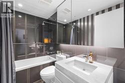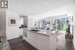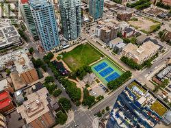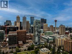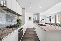 Welcome to Park Point, where elevated downtown living meets one of the Beltline’s most coveted locations. This stunning corner residence showcases sweeping southeast views over Central Memorial Park and the Calgary Tower, offering an ever changing backdrop of greenery, fountains, and city energy from the living room, primary bedroom, and private balcony. Inside, the home is bathed in natural light from expansive windows and finished with wide-plank laminate flooring throughout, creating a clean, modern aesthetic. Just off the entry, you’ll find a beautifully designed full bathroom featuring high gloss tile, a white marble vanity, and premium Hansgrohe fixtures, along with a conveniently placed laundry area and front closet.The kitchen is a true showpiece, thoughtfully designed with Italian Armony Cucine cabinetry, integrated German Liebherr double fridge/freezer, AEG gas cooktop and wall oven, and elegant granite countertops and backsplash. A large granite island anchors the space, ideal for both entertaining and everyday living. Sleek back-lit shelving and a custom end counter unit provide the perfect spot to showcase art or create a stylish dry bar. The entire unit has been tastefully upgraded, including designer lighting throughout, highlighted by an I Lucci Argentati linear suspension dining fixture valued over $10,000, along with fresh paint and wallpaper accents. Every room enjoys incredible views and an abundance of light. The primary suite offers a tranquil retreat with picturesque park views, a generous walkthrough closet, and a spa-inspired 3-piece ensuite with a large glass shower. The second bedroom, located on the opposite side of the unit in a desirable California style layout, provides excellent privacy. A separate den adds flexibility, perfect for a home office or study.Residents of Park Point enjoy an exceptional list of amenities, including 24-hour concierge service, secure underground parking with car wash bay, bike and pet wash areas, an indo or-outdoor social lounge with full kitchen and BBQ, bookable guest suite, a serene landscaped garden with water feature, and full fitness facilities complete with sauna and showers. A large storage locker is also included. All of this is just steps from Calgary’s best restaurants, cafés, pubs, boutiques, fitness studios, and everyday conveniences. This is executive Beltline living at its finest, refined, connected, and effortlessly stylish. (id:27)