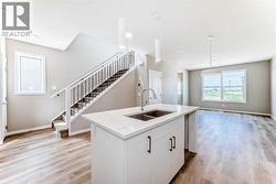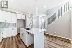 Step inside and feel right at home in the Barwell—a thoughtfully designed laned home that strikes the perfect balance between style, function, and comfort. With 1,515 sq ft of well-planned living space, this brand-new residence in the vibrant community of Hotchkiss checks all the boxes for modern family living. The main floor welcomes you with 9’ ceilings and durable luxury vinyl plank flooring throughout. A spacious front living room flows effortlessly into the heart of the home—an L-shaped kitchen featuring sleek quartz countertops, contemporary cabinetry, and a large dining area that’s perfect for gatherings. Tucked just off the kitchen is a convenient pocket office, ideal for remote work or managing your day-to-day. Upstairs, you’ll find a functional layout with three well-sized bedrooms, including a spacious primary retreat complete with a tile-to-ceiling ensuite shower that adds a touch of luxury to your daily routine. Additional features include painted spindle railings on the main level, knockdown ceiling texture, and a side entrance provides options in the future for a basement suite (A secondary suite would be subject to approval and permitting by the city/municipality) providing the perfect spot for extended family or rental income. Additionally the basement features a wet bar rough-in already in place, making it easy to plan out your dream basement. **This home also comes complete with full front and backyard landscaping, including sod, mulch on the side yards, and trees/shrubs in the front as per community guidelines. Enjoy warm summer evenings in the west-facing backyard, or take advantage of the exterior gas line for future BBQs. Whether you're a growing family or a savvy investor, this home offers long-term value in one of Calgary's up-and-coming communities. Hotchkiss is a new southeast Calgary community designed for those who crave space, connection, and outdoor living. With easy access to major roadways, future planned amenities, and nearby parks and pathways, it’s a neighbourhood that blends natural beauty with city convenience. Whether you're headed to work or the mountains, Hotchkiss puts you in a prime location to live your best Calgary lifestyle. (id:27)