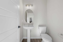 Move-In Ready | The Newport IV | Built by Broadview Homes | 1,380 SqFt | 3 Bed, 2.5 Bath | Top of the Line Finishes | Sparkling Quartz Countertops | Stainless Steel Appliances - Builder's Package | Full Height Cabinets | High Ceilings | Incredible Natural Light | South Facing Backyard | Alley Access | Rear Parking Pad. Welcome to the Newport IV by Broadview Homes — a beautifully designed brand new, move-in ready home offering 1,380 square feet of refined living space with 3 bedrooms and 2.5 bathrooms. Perfectly tailored for modern living, this home combines elegant finishes with functional design in a bright and open layout. The main level features 9’ ceilings that create a spacious, airy feel throughout. A sunlit Great Room welcomes you in and flows seamlessly into the dining nook and stylish kitchen. Thoughtfully designed for both everyday comfort and entertaining, the kitchen showcases a large central island, pot lights, and high-quality cabinetry by Wildwood Cabinets, complete with soft-close doors and drawers. The open-concept layout ensures effortless flow and connection between living spaces. Upstairs, the private primary bedroom offers a peaceful retreat with a walk-in closet and a well-appointed ensuite bathroom. Two additional bedrooms are generously sized and share access to a sleek main bathroom, while the convenient upstairs laundry makes everyday living even more effortless. Crafted with care and quality, this home includes high-efficiency, low-maintenance 100% vinyl windows, an engineered floor system, superior carpet, and a wide selection of luxury vinyl plank flooring and tile in all wet areas. Designed with future potential in mind, this home is also ready for a legal basement suite (subject to city approval). It features a separate side entrance, 9’ basement ceilings, kitchen sink and laundry rough-ins, and a second furnace with HRV system—making it ideal for a mortgage helper or multigenerational living. Located in a desirable new community, this move-in ready home offers an exceptional opportunity to enjoy the quality, style, and peace of mind that comes with owning a brand new Broadview Home. Schedule your private showing today and experience the best of modern living!