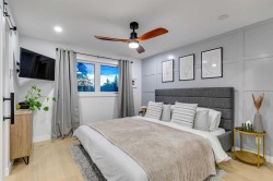 LUXURY RENOVATION | 5 BEDS + 3 BATHS | 4-LEVEL SPLIT | 2,600+ SQ FT OF LIVING SPACE | DOUBLE GARAGE | FACES GREEN SPACEThis completely redesigned and modernized home offers a perfect blend of functionality, style, and luxury in the highly desirable community of Varsity. Ideally located just minutes from the University of Calgary, Market Mall, University District, and the LRT, it provides exceptional convenience for both families and professionals. Rebuilt from the studs up in 2022 the renovation met 2022 building codes with new plumbing, electrical, insulation, heating, and exterior were installed ensuring quality and longevity for years to come.Inside, the main floor showcases an open-concept layout with engineered hardwood throughout and large windows that flood the space with natural light. The contemporary kitchen is a chef’s dream, featuring custom shaker cabinetry, a generous pantry, subway tile backsplash, and a premium stainless steel appliance package that includes a French door refrigerator, gas cooktop, built-in oven and microwave. A spacious quartz-topped island provides extra prep space, breakfast bar seating, and a stylish focal point for gatherings.The inviting living area centers around an elegant inset gas fireplace with a dark tile surround and built-in media unit, creating the perfect place to relax. The adjacent dining area opens through large sliding doors to a large deck and interlocking brick patio—an ideal setting for outdoor dining and entertaining.Upstairs, you’ll find continued hardwood flooring and a stunning primary suite designed for comfort and sophistication. The room features a soft grey accent wall, large window, custom walk-in closet, and a beautiful barn door that leads to the luxurious spa inspired 5-piece ensuite. The ensuite includes a modern double-sink vanity, freestanding soaker tub, and a glass-enclosed shower with. A secondary bedroom overlooks the front yard and green space across the street, while a nearby 4-piece bathroom offers matching quartz counters with a tiled tub & shower combo.The lower level adds even more functional living space with engineered hardwood, three additional bedrooms, a full bathroom, and a stylish mudroom featuring built-in storage and direct backyard access. One level down, a bright and expansive rec room awaits—complete with plush carpeting, a custom media wall, and a wet bar with built-in cabinetry and a beverage fridge perfect for watching the game or movie nights with the family.Outside, the private backyard is fully fenced and opens directly onto Varsity Acres Park—perfect for kids, pets, and outdoor activities. With its prime location, modern updates, and timeless design, this exceptional Varsity home offers the perfect balance of luxury, comfort, and convenience.
