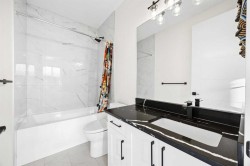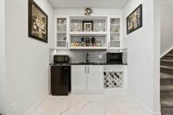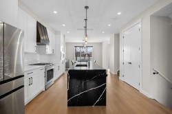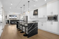 This beautiful 2-storey infill is tucked along a quiet, tree-lined street in the heart of Bowness and offers the perfect blend of style, comfort, and value. With a bright west-facing backyard and easy access to Bowness Park, schools, shops, and major routes, this home delivers everyday convenience in a family-friendly location.Step inside to a thoughtfully designed layout with 9’ ceilings on all levels, hardwood flooring, and a kitchen that truly stands out. Sleek black finishes, a striking waterfall-style quartz island, and quartz counters in every bathroom give the home a clean, modern feel. The main floor also features a spacious living room with a fireplace, a dedicated dining area, a convenient mudroom, and a 2-piece bath.Upstairs, you’ll find three comfortable bedrooms, including a generous primary suite with a large walk-in closet and a 5-piece ensuite. A full 4-piece bathroom, upper-floor laundry, and a bright bonus loft complete this level.The fully finished basement adds even more functional space with a large rec room, a stylish wet bar with an Arctic King mini fridge, a full bathroom, and a fourth bedroom—ideal for guests or extended family.Outside, the west-facing backyard is ready for year-round enjoyment with a deck, patio, BBQ area, and plenty of green space—including fresh raspberry bushes. A 6-person Cal Spas hot tub sits on a dedicated cement pad with underground electrical tied to the garage and two exterior kill switches. This home also comes loaded with thoughtful extras:• MET Blinds throughout, including three motorized blinds with remotes• Central vacuum system (Nilfisk Supreme 150 powerhead kit – hospital-grade, allergen-free)• Whirlpool Sport white washer & dryer• Oversized two-car garage with great storageA beautifully built infill with premium finishes, smart upgrades, and a fantastic location—offered at exceptional value.