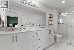 Welcome to 47 Wolf Willow Blvd SE — an immaculate, turn-key home offering 1,626 sq ft above grade plus 556 sq ft developed below, designed for both comfort and style. From the moment you arrive, you’ll appreciate the east-facing covered front deck, perfect for enjoying your morning coffee in the sun. Inside, this home shines with quartz countertops, an island kitchen, and stainless steel appliances, all complemented by modern finishes and thoughtful design throughout. The open main floor flows effortlessly, making it ideal for everyday living and entertaining. Upstairs, you’ll find three spacious bedrooms, while the fully developed basement adds flexibility with a Murphy bed, creating an easy 3+1 bedroom setup. With 3.5 bathrooms, there’s plenty of space for family and guests alike. The basement is a true retreat, featuring a luxurious steam shower — your own private spa at home. Additional highlights include central air conditioning, an oversized double garage, and a private backyard perfect for relaxing or hosting summer gatherings. Meticulously maintained and truly move-in ready, this home offers exceptional value in one of Calgary’s most sought-after communities. Immaculate. Stylish. Ready for you to call home. Call your favourite realtor for a private showing. (id:27)