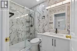 Welcome to this exceptional, fully renovated residence that effortlessly combines modern elegance with everyday functionality. Nestled in the heart of Taradale, this impressive 4-bedroom, 3.5-bathroom home is thoughtfully designed to maximize space, comfort, and style—perfect for families and savvy investors.From the moment you step inside, you’ll appreciate the meticulous craftsmanship and upscale finishes throughout. The inviting family room features a gas fireplace with custom built-in cabinetry, while sleek tile flooring enhances the entire main level. A spacious dining area opens to a large, covered deck with privacy glass, creating an ideal setting for year-round entertaining.The reimagined kitchen showcases quartz countertops, modern cabinetry, new appliances, and ample storage—blending beauty with practicality. The home features upgraded flooring throughout with no carpet, along with extensive improvements including new windows, entry door, paint, baseboards, contemporary lighting, roof, siding, water heater, and water softener.All bathrooms have been tastefully redesigned with floor-to-ceiling tile, modern vanities, and stylish fixtures. A bright staircase with a skylight leads to the upper level, where the primary retreat offers custom built-in storage, a closet organizer, and a beautifully updated ensuite. Two additional bedrooms and a full bath complete this level.The fully finished basement adds outstanding value with a separate entrance and a 1-bedroom illegal suite, featuring its own laundry, upgraded kitchen, renovated bathroom, and new windows—ideal for extended family or rental income.Enjoy a landscaped backyard, plus the convenience of an oversized double garage with back-alley access. Ideally located just minutes from schools, shopping, transit, parks, and playgrounds, this home offers both lifestyle and location. (id:27)