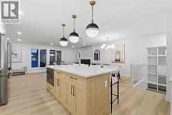 GORGEOUSLY RENOVATED INSIDE & OUT | UNIQUE LAYOUT WITH 2 PRIMARY BEDROOMS | 4 TOTAL BEDROOMS | 3.5 BATHROOMS | WALKING DISTANCE TO THE BOW | Thoughtfully re-imagined from top to bottom, this exceptionally large bungalow delivers modern comfort, flexible living and refined design in a sought-after setting. Nearly 1,500 sq ft on the main level allows everyday life to unfold with ease, while an open-concept layout creates natural flow for entertaining and quiet moments at home. Luxury vinyl plank flooring provides durability and warmth underfoot, paired with a calm neutral colour palette and curated designer lighting that elevates each space. Oversized windows with both south and north exposure fill the home with natural light throughout the day, creating a bright and balanced environment. Evenings are anchored by a striking fireplace that brings warmth and visual focus to the living area, while clear sight-lines across the dining space encourage connection during meals and gatherings. A chef-inspired kitchen blends style and performance with stone countertops, full-height cabinetry for generous storage, a gas range and a large centre island that doubles as a social hub with casual seating. Design-forward details continue into a beautifully finished powder room where bold wallpaper and elevated fixtures add personality without sacrificing cohesion. A rare dual primary suite configuration on the main floor offers outstanding flexibility for multi-generational living, long-term guests or home office needs. One primary retreat features a spacious layout, custom walk-in closet and a spa-inspired ensuite with dual sinks, a deep soaker tub and an oversized rain shower. Comparable comfort is found in the second bedroom, which includes its own walk-in closet and private ensuite. Additional living space extends into the fully finished basement, completed in the same refined style as the main level. A generous recreation area supports movie nights, games and casual entertaining, complemented by a built-in bar for easy hosting. Two additional bedrooms provide versatility for family, guests or workspaces, supported by a beautifully updated 4-piece bathroom. A well-appointed laundry room enhances daily function with upgraded backsplash, ample storage, sink, folding counter and front-load appliances. Outdoor living is equally considered with a large fully fenced backyard offering privacy and room to relax. Summer gatherings are supported by an expansive patio, while a grassy play area accommodates kids and pets. Everyday convenience is elevated by having an oversized double detached garage accessed from a paved back lane on a corner lot, providing secure parking and storage. This prime location places shopping, parks, green spaces and schools close at hand, with quick access to Market Mall, the University of Calgary and the Children’s Hospital. Thoughtful design, functional flexibility and long-term livability come together in a home that supports both active and relaxed lifestyles. (id:27)