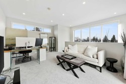 In Altadore, it’s rare to find the perfect blend of an inner city lifestyle and true outdoor living, a private backyard and a garage, but this home checks all of the boxes! Set in a location that truly maximizes lifestyle, you are just minutes from the boutiques, dining, coffee shops, and gyms of Marda Loop. Outdoor enthusiasts will love having Sandy Beach and endless pathways nearby! This community has top rated schools, convenient transit options and access to major roads, making commutes a breeze. This corner unit townhome delivers elevated style, thoughtful upgrades, and urban convenience all wrapped in charming brick architecture. Inside, 10 ft. ceilings and oversized windows create a bright, sophisticated atmosphere. Hardwood floors flow through the open main level, where a welcoming living room centers around a sleek gas fireplace. The dining space is designed for entertaining, while the chef’s kitchen stands out with quartz counters, premium appliances including a gas range, a sleek backsplash, and a rare upgrade, an additional full pantry! This level is complete with a 2 piece powder room, just off the kitchen. Upstairs, the primary retreat includes a generous walk-in closet with upgraded shelving and a serene ensuite featuring dual sinks and heated floors, an everyday luxury. A second spacious bedroom and convenient laundry complete this level, with remote controlled ceiling fans in the bedrooms adding extra comfort year round. The top floor flexes to suit your lifestyle! A family room, home gym, office, or additional bedroom, enhanced with motorized electronic blinds and a bar rough-in. From this floor, you have direct access to your private rooftop patio showcasing sweeping city and mountain views. A must see for the best sunsets! The fully developed lower level extends your living space with a recreation area, office niche, another full bedroom, and a 4-piece bathroom. This home also includes; custom closet organizers, Hunter Douglas premium blinds, rough ins for air conditioning and Vacuflo that all add to the everyday function and finish. Step outside to one of Altadore's most desirable features, a private, fully fenced backyard, perfect for pets, play, or summer nights, complete with a gas line for your barbecue. A single detached garage offers secure parking and storage. This is the best of Altadore! Urban energy, walkability, modern living, without sacrificing space, privacy, or comfort. Welcome home.