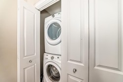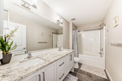| Attached Garage With Driveway | Vaulted Ceiling | Bright Interior | Finished Walk-Out Basement | Welcome home to this beautifully designed END-UNIT WALKOUT townhome, built in 2016 in the sought after neighbourhood of Sage Hill! Surrounded by community pathways that run along the picturesque environmental reserve and great access to amenities, there is no better place to call home. With an abundance of windows, you will love the bright and airy atmosphere of this modern and meticulously maintained townhome, featuring over 1,500 Sqft of living space. The Home has attached garage, full size driveway, private entrance greets you upon arriving at the home,spacious living room with 12-foot vaulted ceiling, huge windows, and back deck facing the semi-private green space! The gourmet kitchen features ceiling-high cabinetry complete with under cabinet lighting, granite counters, upgraded stainless steel appliances, and contemporary laminate flooring. The kitchen island has a flush eating bar with two-tone cabinetry and an undermount sink. The balcony has a gas line, and is adjacent to the dining area with plenty of space for your whole family. Perfect for entertaining! The top-most floor is home to the private owner’s retreat complete with his-and-her closets and 5-piece ensuite (dual vanity with granite countertop and undermount sinks). Across the hall is the 2nd bedroom with its own ensuite and walk-in closet. The side-by-side laundry closet with front loading washer and dryer is located near the bedrooms for maximum convenience and features plenty of storage space. You will love the flexibility made possible by the finished walk-out basement space which can be used as an office, spare bedroom, or bonus room. Step out onto your private patio and enjoy the green space that sits just behind the home. There is a LARGE storage space that runs under the front entrance, and the property has A/C roughed in.