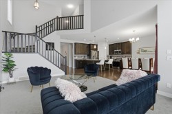 Very rare floorpan. 2221.77 sqft 2 storey total of 3195 of developed home features 3 bed room up and one in the basement., 4 full bath, a large modern kitchen with white quartz counter tops, Gas fire place. The living room features high ceilings with beautiful 18 ft windows. Private den/diningroom, Close to 3 schools , 3 playground, gorgeous pond and many walkng and bike paths. New Furnce, Washer, Dryer and Fridge