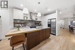 Former show home, meticulously maintained and ideally positioned on a quiet, low-traffic street in one of Garrison Green’s most desirable pockets. Just minutes to the Glenmore Reservoir, Sandy Beach pathways, Peacekeeper Park, excellent schools and only 7 km to downtown, this location offers an exceptional blend of nature and inner-city convenience.Designed for light and connection, the main level showcases floor-to-ceiling windows, elegant French doors and an open-concept layout that seamlessly unites indoor and outdoor living. The kitchen is both functional and refined with artistic backsplash detail, abundant storage and insulated luxury vinyl plank flooring, while the updated powder room and welcoming front entry elevate everyday living. Built-in Bluetooth Bose speakers enhance the ambiance on both the main and upper levels.Upstairs features three bedrooms including a spacious primary retreat with a private ensuite, dual walk-in closets (his & hers), and a full bathroom for family or guests.The permitted fully developed basement adds significant additional living space with a bedroom, 3-piece bath, soundproofed ceiling, recessed dimmable lighting, Wi-Fi thermostatically controlled heating, functional laundry room, rough-ins for a future kitchen and fireplace, gas water heater, updated 100A panel, and insulated luxury vinyl plank flooring for enhanced comfort.Thoughtfully upgraded with a new roof (2023), front and backyard sprinkler system, hot tub spa pack, and an oversized single garage with extensive shelving. Surrounded by mature trees, the private deck creates a peaceful and private outdoor retreat.An exceptional opportunity to own a move-in ready home in one of Calgary’s most sought-after inner-city communities. (id:27)