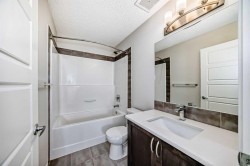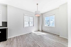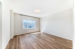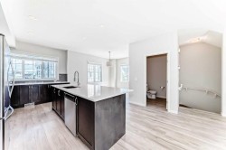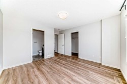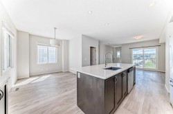 Welcome to 59 Nolanlake Cove NW, a beautifully updated 3-bedroom plus den END UNIT townhouse in the desirable community of Nolan Hill. With 1,705 sq. ft. of well-designed living space across three levels, this home offers comfort, functionality, and stylish upgrades. Enjoy the feel of a refreshed interior with brand new Luxury Vinyl Plank (LVP) flooring throughout the lower and upper levels, including both staircases, and fresh paint throughout the entire home. The main floor features an open-concept layout with quartz countertops, upgraded cabinetry with soft-close drawers, and a spacious island perfect for cooking and entertaining. The kitchen is completed with Whirlpool stainless steel appliances, a stand-up pantry, and a modern subway tile backsplash. The adjoining living and dining areas open to a private balcony with a natural gas line—perfect for barbecues and relaxing outdoors and enjoying peaceful courtyard views. A convenient 2-piece powder room is also located on this level. Upstairs, the primary bedroom features a large walk-in closet and a private luxurious en-suite with an oversized standing glass shower. Two additional bedrooms, a full 4-piece bathroom, and a laundry area complete the upper floor. The entry-level features a versatile den—perfect for a home office or gym—and access to a spacious double attached garage that’s fully insulated and drywalled. There's also street parking available right out front. This well-managed complex includes green spaces, visitor parking, and access to walking paths and ponds. You'll enjoy quick access to Sarcee Trail, Shaganappi Trail, and Stoney Trail, and you're just minutes from Sage Hill Centre, Beacon Hill Shopping Centre, Costco, restaurants, grocery stores, and more. Don’t miss the opportunity to own this move-in-ready, stylishly upgraded townhouse in a prime NW location. Schedule your private showing today!