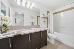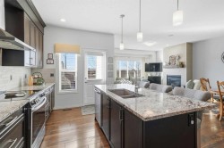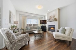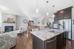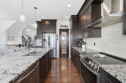 This former Excel showhome has been impeccably maintained, offering a rare blend of elevated design, thoughtful functionality, and family-friendly living. With classic curb appeal, mature trees, irrigation, an extended composite deck, and higher fencing, the exterior is both polished and private. Inside, the home showcases 9’ main-floor ceilings, wide-plank engineered hardwood, ceramic tile, upgraded shutter blinds throughout, and striking wrought-iron railings - details that reflect true quality. The gourmet kitchen anchors the main floor, featuring upgraded cabinetry & mouldings, gorgeous stone countertops, large island w/ undermount sink, stainless steel appliances (newer stove & fridge w/ water/ice), and a walk-through pantry with custom built-ins - perfect for both entertaining and busy family life. The living room is warm and inviting with large windows, and features a stunning fireplace. The main floor is finished with a mudroom (with custom built in), 2pc bath removed from all living spaces, handy closets & a generously sized dining area. Heading upstairs you'll notice a stunning skylight, and how the floorplan is thoughtfully designed with families in mind. A bright bonus room with vaulted ceilings, 2 generously sized bedrooms each with walk-in closets, a full 4-piece bath, and a built-in workspace ideal for homework or working from home. The primary retreat feels like a private escape, with an upgraded tray ceiling, walk-in closet, and a spa-inspired 5-piece ensuite with a separate water closet. Upstairs is complete with a laundry room w/ additional storage. Downstairs, the fully finished basement adds exceptional versatility with a spacious rec room featuring additional baseboard heat, a 4th bedroom, a 3-piece bath, and ample storage. Additional upgrades include air conditioning, heated garage, Vacu-Flo system, recessed lighting, added trees in the backyard, and surround-sound wiring throughout the main and upper floors. Ideally located steps from a large park and green space, and offering quick access to Mcleod Trail and Stoney Trail, this home delivers showhome-quality finishes, everyday comfort, and an exceptional setting for growing families who appreciate refined living.