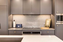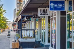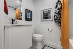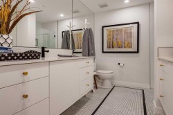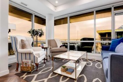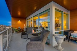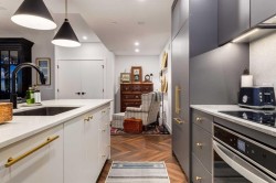 Experience elevated urban living in this warm and inviting two-bedroom residence offering over 1,100 square feet of thoughtfully designed interior space and a wraparound terrace perfect for everyday outdoor living and relaxed entertaining. Blending a cozy Ralph Lauren–inspired aesthetic with modern finishes, this home features chevron-patterned flooring, designer lighting, and flat-painted ceilings that create a timeless atmosphere throughout. The chef-inspired kitchen is the heart of the home, showcasing matte grey slate cabinetry with soft-close hardware, brushed-gold accents, quartz countertops, and a matching backsplash. Premium appliances include a Frigidaire induction cooktop, Elica hood fan, Fisher & Paykel integrated fridge and freezer, and Whirlpool oven, complemented by a deep grey Blanco sink, elegant black pendant lighting, and a spacious walk-in pantry. The open living room and dining areas are bathed in natural light from expansive windows that frame stunning mountain views, while a charming reading/coffee nook offers the perfect spot to unwind or start your day. The versatile second bedroom can easily serve as a guest room, home office, or creative space, complete with a walk-in closet and a stylish four-piece bathroom. The primary suite feels calm and comforting, with warm neutral tones, a walk-in closet, and a spa-like ensuite featuring dual vanities, quartz countertops, and a glass-enclosed shower. Additional features include a new Electrolux washer and dryer, generous linen storage, one titled underground parking stall, and two large storage units. The wraparound terrace enhances daily living with ample space for outdoor lounging and garden greenery, creating a private retreat in the heart of the city. Residents enjoy access to premium amenities including a rooftop patio, private owner’s lounge, secure underground visitor parking, bike storage, EV charging stations, and concierge services. Ideally located in Calgary’s West District, you are surrounded by parks, walking paths, boutique shops, cafés, and dining options. Book your private viewing today!