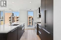 Flooded with natural light, this exceptional corner unit features two walls of floor-to-ceiling windows with beautiful views of the historic Grace Presbyterian Church. Recently updated with brand new flooring in the living areas and bedrooms, the home showcases 9’ ceilings in the living room, high-end finishes throughout, and a sleek, contemporary feel. The chef-inspired kitchen offers a sophisticated blend of dark wood and white cabinetry, quartz countertops, gas range, marble backsplash, and a large central island with breakfast bar. Thoughtful details include a pantry, coffee station, and integrated fridge and dishwasher, making the space as functional as it is stylish. The primary bedroom is a serene retreat with a crisp white ensuite featuring dual vanities, ample storage, a spacious shower, and a walk-in closet with built-in organizers. A second bedroom and full bathroom provide flexibility for guests, a home office, or shared living. In-suite laundry adds everyday convenience. Located in The Royal, a highly desirable building, residents enjoy outstanding amenities including a concierge desk, fitness centre, squash courts, sauna and steam room, a rooftop patio and garden, and a party room with fireplace and pool table. One assigned underground parking stall and a storage locker are included with this unit. Pets welcome with board approval. Set in the heart of vibrant 17th Avenue, this is a true walkable lifestyle surrounded by award-winning restaurants, cafés, boutiques, groceries, and everyday conveniences, with easy access to the downtown core. Perfect for a young professional, stylish couple, or empty nester seeking an active, urban lifestyle in one of the area’s most sought-after buildings. (id:27)