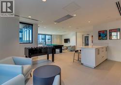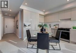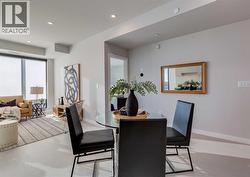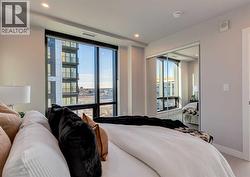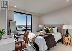 Welcome to this brand-new corner-unit condominium in the Plaza, located in the award-winning West District, where modern design meets an exceptional urban lifestyle. This bright and beautifully designed home features 9-foot ceilings and expansive windows that flood the space with natural light throughout the day. With the main living area and primary bedroom facing south, the home enjoys incredible sunshine, while the east-facing balcony and second bedroom overlook the stunning central patio below. The open-concept floor plan is ideal for both everyday living and entertaining. The contemporary kitchen is finished with quartz countertops, a gas range, and a built-in refrigerator, seamlessly blending style and functionality. The layout offers two spacious bedrooms and two well-appointed bathrooms, along with a large laundry room with excellent storage, a rare and highly desirable feature. Plaza offers exceptional building amenities, including a fully equipped fitness centre and an inviting owners’ lounge complete with arcade games and a pool table. Additional conveniences include a dedicated dog wash and a car wash. The home also includes heated underground parking, modern finishes throughout, and thoughtful design details that set this residence apart. Just steps from your door, enjoy boutique shopping, some of Calgary’s best dining and cafés, and the beautifully designed Central Park. The corner-unit position is truly the standout feature, offering exceptional light, privacy, and views making this a rare opportunity to own in one of Calgary’s most sought-after communities. (id:27)