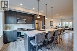 Welcome to 614 Greenbriar Common NW – a quality-built Calla model townhouse by Landmark Homes, located in the vibrant master-planned community of Greenwich. Built in 2020, this 4-bedroom, 3.5-bath home offers over 1,500 sq. ft. of thoughtfully designed living space across three levels. The entry-level features a private fourth bedroom with its own ensuite—ideal for guests, a home office, or multi-generational living. Just off the attached two-car garage, a convenient mudroom/entry makes daily life easy and organized. Upstairs on the main (second) floor, you'll find a bright, spacious open-concept layout combining the kitchen, living, and dining areas—perfect for both relaxing and entertaining. The modern kitchen includes a large island with seating for four, quartz countertops, and 9’ ceilings, which continue throughout the home. A powder room and separate laundry room on the main level add to the functionality of the space. Abundant natural light flows in through large windows and glass doors that lead to balconies on both the front and north-facing sides. Enjoy expansive, unobstructed views over the river valley toward northwest Calgary. The top level includes three generously sized bedrooms, including a primary suite with a walk-in closet and ensuite featuring a large shower. A four-piece main bath serves the other two bedrooms. This townhouse is tucked away at the back of the community, offering peace and quiet, yet remains close to everything. Just steps away is Canada Olympic Park for skiing and recreation, and nearby you'll find shopping, restaurants, and coffee shops. The new Calgary Farmers’ Market West, boutique retail, and dining options are all within walking distance. Commuters will appreciate quick access to 16th Ave NW/Hwy 1, providing a straight route downtown to the east or westward to the Rocky Mountains, Banff, and Canmore. Proximity to Foothills Hospital, Children’s Hospital, and the University of Calgary adds even more convenience. Other highlig hts include walking distance from the off leash dog area, energy-efficient heating, air conditioning, and triple-pane windows for year-round comfort. The home is in excellent condition and still covered by some of the AB home warranty program. Ideal for families or investors seeking a four-bedroom layout with attached garage parking. Don’t miss your chance to own this well-located home in a growing, lifestyle-rich community. Book your showing today! (id:27)