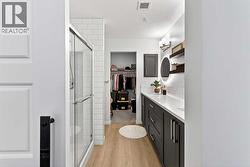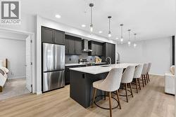 An EXCEPTIONAL OPPORTUNITY to own a LIKE-NEW, HIGH END, LUXURY condo for less than the cost of comparable new construction. Welcome to Seton Serenity by award-winning Cedarglen Living, where this beautifully upgraded 2 bedroom, 2 bathroom residence offers over $23,000 in thoughtful upgrades and a refined, move-in-ready lifestyle. The open-concept layout features 9' ceilings, luxury vinyl plank flooring in the main living space, triple-glazed Low-E windows, sound-reducing membrane between floors, and a striking electric fireplace anchoring the living space. The kitchen is a true highlight with an island extension, built-in pantry, upgraded appliances, quartz countertops, upgraded sink, full-height tile backsplash, soft-close cabinetry, cabinet valance lighting, and sleek roller blinds throughout. The spacious primary bedroom includes a walk-in closet and a luxurious ensuite with raised vanities, upgraded toilets, full-height tile, and an elegant LED mirror, while the well-positioned second bedroom offers added privacy near the second full bathroom. Additional features include stacked washer and dryer adding more in-suite storage, stylish barn door detail, extra fob, clear glass balcony railing, BBQ gas line, energy recovery ventilator (ERV), and titled secured underground parking. A rare and valuable bonus: approved short-term rental businesses are permitted under current bylaws, making this an excellent opportunity for homeowners and investors seeking a luxury rental near South Health Campus, one of Calgary's largest employment hubs. Enjoy unbeatable walkability to the world's largest YMCA, South Health Campus, shops, restaurants, cafés, and Seton HOA amenities. Pet and rental friendly, this extensively upgraded condo delivers the luxury of new construction without the wait, uncertainty, or added cost. (id:27)