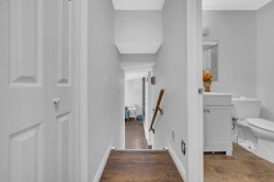 Huge pie-shaped lot with lots of parking and room to build additional garages or additions. Large sunken living room, vaulted ceiling, and floor-to-ceiling three-sided stone feature fireplace between Dining room with sliding doors to a new two-level deck in a private huge backyard. Kitchen with a large corner walk-in pantry, stainless steel appliances, a new glass tile backsplash, and plugs. Master bedroom with ensuite bathroom and wall-to-wall closet. Newer main bathroom. Lower-level family room with a feature floor-to-ceiling stone-faced fireplace, a newer full bathroom, a bedroom/den, and a separate entrance ideal for an illegal suite. The 4th level has a den, a recreation room, and a crawl space for storage. Recent upgrades - New roof shingles, siding, and eavestroughs (2020); upper & main level flooring (2020); paint (2020). Ensuite bathroom (2020), kitchen quartz (2020), single car garage (2020). Make an appointment for a showing with us right now to avoid missing the opportunity to acquire this outstanding house!