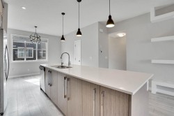 Welcome to this beautiful townhouse in the vibrant community of Cornerstone!From the exterior, you’ll love the charming balcony overlooking a large open field and park with a future school development planned just steps away, adding incredible value and convenience for families.Inside, you’re greeted with the comfort of central A/C. The entry-level features a versatile room with a large window and private door perfect as a home office or an additional bedroom.Upstairs, the heart of the home showcases a stunning open-concept design with a spacious kitchen featuring a large island, modern cabinets, and stainless steel appliances. The bright dining area has large windows and a spacious dining area. A convenient 2-piece bathroom is located on this level. The inviting living room boasts a custom built-in shelving unit with TV mount and direct access to the balcony with unobstructed views of the field.The top floor offers three generous bedrooms, including a primary suite with a walk-in closet, built-in wall lighting, mounted TV (included), and a private en-suite. One of the secondary bedrooms even includes a built-in shelving unit. Laundry is conveniently tucked away behind closet doors just steps from the bedrooms.This home also comes with a double attached garage, visitor parking, and endless nearby walkways, parks, shopping, and restaurants.Highlights: • Central Air Conditioning • Future school development steps away • Double attached garage • Unobstructed balcony view • Close to shopping, dining & amenitiesDon’t miss this incredible opportunity in Cornerstone! Contact your favourite REALTOR® today to book your private showing.