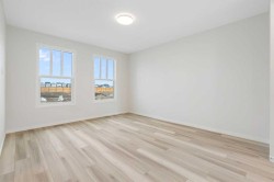 There’s a feeling you get the moment you walk through the doors of 680 Buffaloberry Manor SE - a sense that life’s next chapter is about to unfold. Perfectly positioned in Logan Landing, one of Southeast Calgary’s most anticipated new master-planned communities, this brand-new Cedarglen Homes build isn’t just a house - it’s the promise of a more inspired way to live. Natural light floods through oversized windows, illuminating an open-concept layout designed for connection. The kitchen is sleek, modern, and effortlessly functional & it anchors the main floor with a large island, quartz countertops, and contemporary cabinetry. You’ll get to choose your own appliances at the builder’s supplier with an allowance of $6900. The kitchen flows seamlessly into the living and dining spaces, where laughter, conversation, and everyday life feel right at home. Step through to the back deck, where weekend grilling and golden-hour sunsets become a ritual. A mudroom and powder room complete the thoughtful main-floor design. Upstairs, discover three spacious bedrooms, each with its own walk-in closet - a rare luxury that keeps everything beautifully organized. The primary suite feels like a boutique retreat, featuring a spa-inspired ensuite with dual vanities and a glass walk-in shower. The walk-through closet connecting directly to the laundry room is a detail that quietly transforms daily life, making every morning just a little easier. Below, the undeveloped basement with a side entrance and 3-piece rough-in offers endless potential - whether you dream of a suite for income potential (subject to City of Calgary approval), a media room, or a home gym. Outside, the curb appeal is instant and lasting, with James Hardie siding and stone accents giving the home a timeless, modern edge. Life in Logan Landing means more than just beautiful homes - it’s about belonging to a growing community shaped by parks, pathways, and future shops all just minutes from your door. This is a neighbourhood built for connection, convenience, and the kind of lifestyle that keeps getting better with time. So don’t just find a place to live - find a place to grow, to gather, and to thrive. Your next chapter begins here. Book your private showing today. *Some photos are virtually staged.*