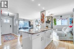 WOW! Take a look at this one-of-a-kind bungalow! This sprawling, mint-condition home is situated on a generous 52.5’ x 110’ lot, on a quiet cul-de-sac, in the sought-after community of Acadia, and has been impeccably renovated-from-top-to-bottom! Boasting over 2,550 square feet of fully developed living space with 5 bedrooms + den, 2 spa-inspired bathrooms, fully remodelled kitchen, bright living and dining room spaces, expansive sunroom (with floor-to-ceiling windows, skylights, vaulted ceiling, and heated floors), basement recreation room, and a ultra-rare double heated attached garage, this home is sure to impress! The home is thoughtfully oriented with a sunny south-facing front yard and a super-private north-facing backyard that is extensively landscaped with mature trees, gardens, a tranquil pond, patio area, and natural gas BBQ hookup—making it the ultimate outdoor retreat. Recent upgrades here include a high-efficiency furnace (2021), central air conditioner (2021), tankless water-on-demand system (2025), sump pump installation (2025), boiler system for the heated sunroom floors (2023), natural gas garage heater, newer asphalt shingles, newer skylight glass, oversized Lux vinyl windows (2025, in the main floor bedrooms and living room), two wood-burning fireplaces including a custom-built Rumford Fireplace (2023), premium Splendour Gold granite countertops (2021, kitchen/bathroom), all new appliances (kitchen/laundry, 2021-2025), main level hardwood floors (continuation and refinishing, 2022–2024), lower level luxury vinyl plank flooring (2023), and a central vacuum system. Pride of ownership is evident here! Homes seldom sell in this cul-de-sac! Don’t miss out - call now! (id:27)