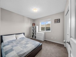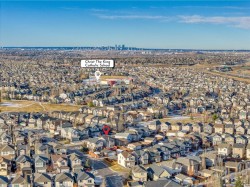 Immaculately maintained, this spacious 3 bedroom, 2.5 bath home features a thoughtfully designed layout with a main floor den, perfect for a home office or flex space. The kitchen showcases dark stained cabinetry, black appliances, granite countertops, a spacious island and a pantry. The dining area is ideal for family gatherings and entertaining guests, while 9 foot ceilings on the main floor enhance the bright, open feel of the large living room. A functional mudroom leads to a two-tier deck and a very generous backyard. Outside you’ll find ample space to build a garage, start your own organic garden or simply enjoy outdoor recreation. Upstairs, the primary bedroom includes a 4 piece ensuite and a walk-in closet, while the other two well sized bedrooms share a full bathroom. Enjoy the convenience of upper floor laundry. Notable upgrades include central air conditioning, knockdown ceilings throughout, rounded corners, dual-zone heating, a rough-in for central vacuum, 9 foot basement ceilings, hardwood flooring in the kitchen, dining, and living areas, tile in the entryway and bathrooms and finally, newer washer, dryer and dishwasher. Located in the well established community of Cranston, this home offers an exceptional blend of nature and modern amenities. Residents enjoy access to the Bow River pathway system, Fish Creek Park and extensive walking pathways, including routes with stunning views. The area is served by K–4 and 5–9 public schools, as well as a K–9 Catholic school. Cranston’s vibrant community centre features a gym, meeting and party rooms, tennis courts, a splash park, outdoor skating rinks and a variety of programs. South Health Campus, a high school, and the YMCA in Seton are just minutes away too. The area also offers easy access to Deerfoot Trail and Stoney Trail, making for a convenient commute.