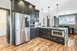 This pristine home is a rare gem and is loaded with character and meticulous details that elevate it above others in its price range. This INCREDIBLE MULTI LEVEL FLOOR PLAN is unique in the most positive ways and must be seen to be appreciated. Over 3,500 sq ft of total living space including over 370 sq ft being approximately 6" below grade - essentially at grade level. The expansive dream kitchen boasts gorgeous granite waterfall countertops, built in Miele coffee maker, built in blender and an ultra convenient walk in butler's pantry with a 2nd fridge and lots of extra cabinetry and counter space - truly a chef's paradise. There is a spectacular bonus room with soaring vaulted ceilings, providing a perfect retreat or entertainment space. Throughout the home, you'll find the state of the art Lutron RA2 lighting system, power blinds, an R/O system, central vac, central air and water softener. For those who love outdoor living, the backyard does not disappoint. Enjoy the seamless indoor outdoor flow with a built in Napoleon BBQ, poured concrete plant bed curbing, patio w/firepit and a covered deck. There is also an 8' x 10' storage shed, an irrigation system, beautiful mature landscaping, GEMSTONE LIGHTING and a heated garage. Situated in a perfect child friendly location, this gorgeous home is just steps from a park and a stone's throw from schools and all essential conveniences. This home promises a lifestyle of luxury, comfort and ease. Don't miss the opportunity to make this exquisite residence your forever home!