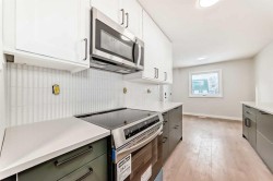 First time home buyers and insightful investors - take note.!!! Top of the line renovation, just completed! and you're welcome - all the heavy lifting has been done - no expenses spared. This turn-key fantastic home features a galley style kitchen with BRAND NEW quartz counter tops, Frigidaire Induction stove, side by side Refrigerator, Microwave/hood fan and classic tiled back splash. Gorgeous deep green base cabinets with soft close drawers are paired with spacious white upper cabinetry. Your living room and cozy dining area offers a lovely view of the yard and sunsets. The main floor is completed with a half bathroom and a convenient side entrance-with an easy access storage shed. Upstairs features 3 good sized bedrooms, a full bath and a linen closet. The basement is fully finished with a rec room, laundry room and plenty of storage. Other features you will love about this property are, easy maintenance vinyl flooring throughout, new windows, knock down ceilings, new baseboards, new landscaping. To be noted as well, this property has a BRAND NEW TOP END 2 stage furnace and a BRAND NEW TOP END water heater, and fresh new paint throughout. This home is a gem with absolutely awesome neighbors. The location is ideal- close to Glenmore Trail and easy access to Deer Foot Trail. This charming home is nestled on a quiet street, close to shopping, transit, schools and parks. Ogden is a well established safe neighborhood - an up and coming hot spot - don't miss this investment opportunity!