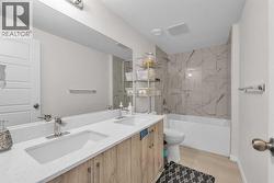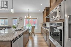 Welcome to this exceptional home, offering 3,800+ sqft of developed living space in a prime location! With extensive upgrades throughout, this spacious residence boasts two living areas, a chef-inspired kitchen with a separate spice kitchen, and 5 bedrooms including a main-floor bedroom with a full bath. finished basement adds even more living space, featuring a wet bar, another full bath and a large storage room. Located on a quiet street, just seconds away from transit, parks and grocery stores, this home is perfectly positioned for convenience and comfort.As you enter the home, you are greeted by a grand 18' open-to-below foyer, with beautiful maple railing and soaring ceilings. The main level features LVP flooring throughout, with a spacious living room and dining area upon entry, perfect for hosting guests. The family room, set across from the chef’s kitchen, is centered around a natural gas fireplace with an upgraded maple mantle and stonework along with additional pot lights to brighten the space. The kitchen is a culinary masterpiece with granite countertops, soft-close maple cabinets, built-in appliances, and a large island. The kitchen is complemented by a bright breakfast nook with expansive windows overlooking the large deck. Additional highlights on the main level include a generously sized spice kitchen with a natural gas range, a private den/bedroom, and a full bath. Upstairs, you'll find four spacious bedrooms, including two primary suites with each suite boasting a 5-piece ensuite with dual vanities and walk-in closets. Additional features in these bedrooms include elegant pot lighting and tray ceilings for a refined touch. A large laundry room, main bathroom, and cozy loft area complete the upper level.The finished basement adds even more value, offering an expansive space for entertainment, a wet bar, a full bathroom with double sinks, and ample storage. Currently being used as a day home, the current setup can also be included for the right pr ice!Nestled on a quiet street, seconds walk to transit, parks, and grocery stores, this home is perfectly situated for both convenience and comfort. New roof shingles! Call your favorite realtor to book a showing! (id:27)