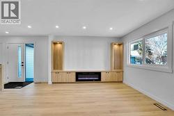 Welcome to 77 Ferncliff Crescent SE, a fully renovated bungalow located on a massive lot in the heart of Fairview, one of Calgary’s most established and desirable communities.This beautifully updated home offers 5 bedrooms and 3 full bathrooms with a thoughtful layout that suits families, investors, or multi-generational living. The main floor features 3 bedrooms, including a spacious primary retreat with a private ensuite, along with a second full bathroom.The main living area is bright and modern, highlighted by a sleek electric fireplace and designer accent walls throughout. The showpiece kitchen showcases custom cabinetry, a large island with waterfall countertops, and contemporary finishes that blend style with function.Downstairs, the fully finished basement includes 2 additional bedrooms, a full bathroom, a large living space with a second electric fireplace, and a stylish built-in bar, making it perfect for entertaining, guests, or extended family living.This home has been extensively upgraded from top to bottom with new windows, a new furnace, new hot water tank, fully upgraded plumbing and electrical, light-up heated mirrors in the bathrooms, a brand new garage door, and a fully upgraded exterior that adds to its curb appeal.Located on an oversized lot in a quiet, family-friendly location close to schools, shopping, transit, and major routes, this is a truly turnkey property offering modern living in a classic neighborhood.A rare opportunity to own a completely renovated bungalow in Fairview. (id:27)