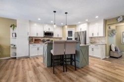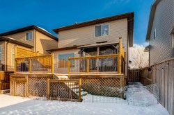 Beautifully renovated 2 storey home offering 3 bedrooms, 3 bathrooms, plus a bonus room, located in the highly sought-after community of Cranston. This home features luxury vinyl plank flooring throughout with no carpet, creating a modern, cohesive, and low-maintenance living space. The bright white kitchen has been professionally refinished and elevated with a sage-coloured accent island, timeless tiled backsplash, and updated stainless steel appliances. The open and inviting living room showcases a stylishly updated fireplace with new mantle and tile surround, perfect for everyday living or entertaining. Fresh neutral paint and updated lighting enhance the home’s light and airy feel. Upstairs offers three well-proportioned bedrooms, including a spacious primary retreat with a walk-in closet and private ensuite. A large bonus room with expansive windows provides flexible space for a family room, office, or play area. Enjoy central air conditioning for a year -round comfort. Roof replaced approximately 6 yrs ago. The unfinished basement is ready for future development. Outside, enjoy a private backyard with a two-tier deck and a scenic wooded side walkway. Complete with a double attached garage.Ideally located within walking distance to schools, playgrounds, shopping, and the Cranston community centre featuring a splash park, tennis courts, and hockey rink. Short drive to South Health Campus. Exceptional value in a family-friendly neighbourhood.