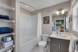 Welcome to this beautifully maintained two-storey home tucked away in the sought after lake community of MahoganyStep inside to a stylish open-concept main floor that instantly welcomes you. The spacious living area is filled with natural light through large windows that highlight the home’s clean lines and modern finishes. The seamless flow between the living, dining, and kitchen areas makes this the perfect space for entertaining guests or spending quiet evenings with family. The kitchen is a true centrepiece featuring sleek cabinetry, double pantry closets, stainless steel appliances (with a gas stove!), and quartz counters with a large central island. A convenient rear mudroom leads to the backyard, keeping everyday living organized and effortless.Upstairs, you’ll find three bedrooms, each designed with comfort in mind. The primary suite is separated from the other rooms and offers a peaceful retreat with a spacious walk-in closet and a private ensuite. Completing the level are two additional bedrooms, a full 4-piece bathroom, and upstairs laundry with a brand new washer/dryer. The undeveloped basement with bathroom rough-in offers incredible potential to expand your living space, whether you envision a cozy family room, gym, or a fourth bedroom, the possibilities are endless.Step outside to a beautifully landscaped, south-facing backyard that’s fully fenced for privacy and perfect for sunny afternoons or evening gatherings. There’s ample room for outdoor dining, gardening, or playtime, and the detached double garage provides both convenience and extra storage. Living in Mahogany means being part of a dynamic, amenity-rich community. Enjoy walking along the scenic wetlands, exclusive access to Calgary’s largest freshwater lake, with sandy beaches, swimming areas, and year-round recreation. The Mahogany Beach Club offers tennis and pickleball courts, playgrounds, skating in the winter, and countless community events. Nearby, you’ll find everything for your weekly routine, including getting groceries, bustling restaurants, charming cafés, and excellent schools, all within walking or biking distance.