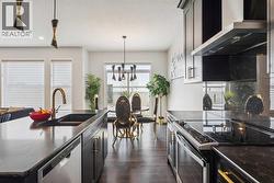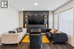This beautifully curated residence offers refined luxury, thoughtful design, and exceptional upgrades in one of Calgary’s most desirable southwest communities. From the moment you enter the inviting open foyer, elegance and functionality are immediately apparent. A generous mudroom with direct garage access and a stylish 2-piece powder room provide everyday convenience right off the entry. The heart of the home is the gourmet kitchen, showcasing the Gourmet Advantage Package with 3 cm GG quartz countertops, full-height backsplash and cabinetry, deep undermount sink, built-in wine rack, walk-through pantry, breakfast bar, and upgraded stainless steel appliances. A 600 CFM Faber chimney hood fan completes the space, while a gas line with shut-off valve is installed for a gas range, offering flexibility to convert from the current electric stove if desired. Recessed lighting and an open-concept layout enhance the home’s bright, upscale ambiance. The sun-filled dining area features elegant glass sliding patio doors that open directly to the backyard, creating seamless indoor-outdoor living. The formal living room is anchored by a striking feature fireplace with custom built-ins, providing a refined focal point for both entertaining and relaxing. Upstairs, a large bonus room offers a versatile family space, while the primary suite serves as a private retreat with oversized windows, a massive walk-in closet, and a spa-inspired 4-piece ensuite. Two additional generously sized bedrooms share a beautifully appointed 4-piece bathroom with custom shelving. A convenient upper-level laundry room with sink and storage adds to the home’s thoughtful design. The fully developed basement expands your living space with a spacious family/recreation room, a large bedroom, and a 4-piece bathroom—ideal for guests, teens, or a home office. Outside, enjoy a fully fenced and landscaped backyard complete with a private patio and gas BBQ line, perfect for summer entertaining or quiet evenings at home. Additional premium upgrades include heated floors in all bathrooms, central air conditioning, Kinetico water softener and dechlorinator, Blanco Liven Silgranit laundry sink, upgraded stair railings to the basement, oak wood-capped stub wall detailing, and recessed lighting throughout.Ideally located near parks, pathways, schools, shopping, and major routes, this exceptional home delivers a lifestyle where luxury meets everyday comfort—a must-see to truly appreciate. (id:27)