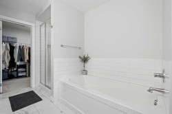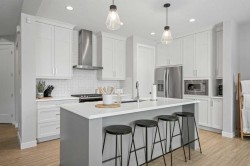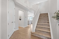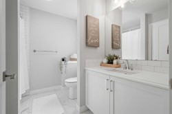 This beautifully maintained 4-bedroom, 3.5-bath home in the heart of Legacy offers over 2,700 sqft of thoughtfully designed living space, seamlessly blending comfort, style, and functionality. Step inside to the open-concept main floor featuring 9-foot ceilings, 8-foot doors, and durable LVP flooring, with a warm and inviting living room centered around a cozy gas fireplace. The chef-inspired kitchen is both elegant and practical, showcasing quartz countertops, eat up breakfast bar, stainless steel appliances, a granite sink, ceiling-height cabinetry, and a walk-through pantry leading to the mudroom—ideal for everyday living and entertaining. Upstairs, three well-appointed bedrooms, a versatile bonus room, and convenient upper-floor laundry create a functional and family-friendly layout. The primary suite offers a true retreat with a luxurious 5-piece en-suite, private toilet room, walk-in closet, and refined finishes. The fully finished basement expands your living space with an additional bedroom, spacious recreation room, and full bathroom. Thoughtful upgrades include air conditioning, a water softener, and professionally installed Gemstone exterior lighting. Outside, the west-facing landscaped backyard is designed for relaxation and hosting, featuring an exposed aggregate patio and private hot tub. Ideally located close to everyday amenities, shopping, schools, and nearby golf courses, this move-in-ready home offers an exceptional lifestyle with comfort and convenience at its core.