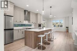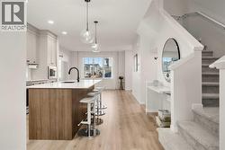 Immaculate and truly move-in ready, this Calbridge Homes Vista EV shows like new and offers a rare opportunity to enjoy a fully finished home without the wait or work of building. The modern layout spans three levels with three bedrooms and two and a half bathrooms, capped by a stunning third-floor bonus room that opens directly onto an incredible rooftop patio, a rare and highly desirable feature. The main level features a bright, open layout with 9-foot ceilings and great flow for everyday living. The kitchen offers ceiling-height cabinetry, a dedicated coffee bar, ample pantry space, and a large island, while the dining area opens directly to the rear deck, creating an easy indoor-outdoor connection. Upstairs, the primary bedroom offers generous space and a walk-in closet, paired with a well-appointed ensuite featuring dual vanities, a glass-enclosed shower, and a soaker tub. The conveniently located upstairs laundry area sits just steps from the primary bedroom. Two additional bedrooms and a full bathroom complete the second level. The third-floor bonus room is a true retreat, offering a bright, relaxed space to unwind, work, or host friends, with direct access to the rooftop patio and open-sky views that make it feel like a private escape above it all. Outside, the home is fully finished with low-maintenance landscaping, full fencing, and a spacious rear deck, making it truly ready to enjoy from day one. Located in Alpine Park, one of Calgary’s most thoughtfully designed new communities, residents enjoy walkable pathways, parks and picnic areas, community gardens, Skyline Pond, tennis and basketball courts, Central Park with city views, and a fully fenced, off-leash dog park within walking distance. The upcoming Alpine Park Village Centre will add cafés, shops, and everyday conveniences just minutes from your door. A rare combination of like-new condition, exceptional outdoor space, and a thoughtfully designed community, this home delivers an elevated and conne cted lifestyle. (id:27)
