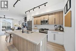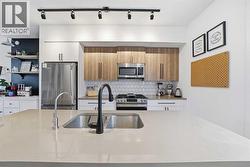 Welcome to this charming, meticulously maintained Walden townhome! Offering 2 bedrooms, 2.5 bathrooms, and single garage with driveway. Step inside to 9-foot knockdown ceilings that create a bright, spacious main floor. The open-concept layout seamlessly connects the living, dining, and kitchen areas, with large windows bathing the space in natural light and showcasing high-quality finishes. The chef-inspired kitchen boasts quartz countertops, stainless steel appliances, ample cabinetry, and a breakfast bar—perfect for casual dining or entertaining. Upstairs, you’ll find generously sized bedrooms, including a primary suite with a large closet and ensuite featuring modern fixtures and dual vanities. Located in the vibrant community of Walden, close to picturesque surroundings and essential amenities, this move-in-ready townhome combines modern style with functional comfort. Don’t miss your chance to experience the best of Walden living—schedule your viewing today! (id:27)