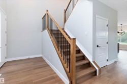 Discover a home built for both comfort and style in this impressive two-storey residence. The main level welcomes you with a bright, airy layout featuring a multifunctional front room that easily adapts as a home office or creative space. The kitchen flows effortlessly into the dining and living areas, offering plenty of room for gatherings, with a half bath tucked conveniently nearby. Upstairs, unwind in three well-sized bedrooms, including a private primary retreat complete with a walk-in closet and its own spa-inspired ensuite. A separate lounge area and upper-floor laundry add everyday ease for busy households. The basement features its own exterior entrance, giving you options for future plans or added flexibility. Outside, the triple garage, with a drive-through bay to the backyard, adds incredible practicality for hobbyists, extra vehicles, or outdoor projects. Thoughtfully designed and full of potential, this home is ready to elevate your lifestyle.