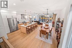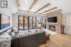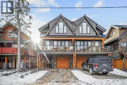 Quietly positioned on a residential street in South Canmore, this northeast corner townhome is a thoughtful expression of modern mountain living. Built in 2020 by Sticks and Stones Custom Homes, the residence reflects the developer’s signature aesthetic—clean lines, natural materials, and a restrained palette that feels both contemporary and timeless. The main level is organized around an open, light-filled living space where kitchen, dining, and lounge areas flow effortlessly to a private deck, creating a seamless connection between indoors and out. Entry from the single-car garage is intentionally designed, with a generous mudroom that supports an active, four-season lifestyle. Two bedrooms are located on the upper level, offering privacy and calm, while large windows frame views toward Mount Lady MacDonald and Grotto Mountain—a constant reminder of the surrounding landscape. Steps from the Bow River Pathway and within walking distance to Main Street, this home balances walkable convenience with a sense of retreat. It is a composed, low-maintenance residence designed for those who value architecture, location, and a quieter approach to mountain living. (id:27)