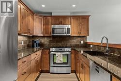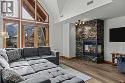 Welcome to an elevated mountain retreat perched on the top floor of Timberline Lodges. Crafted by Alpine Homes, this spacious 2-bedroom + loft, 2-bath residence offers 1,467 sq. ft. of refined living, recently refreshed with brand-new flooring throughout the main level and fresh, modern paint, making it truly move in ready.The open-concept main floor is anchored by a cozy fireplace for the winter months and Air-Conditioning to keep it cool in summer, the unit flows seamlessly through the kitchen and dining area, where expansive windows frame sweeping, exceptional mountain views. A comfortable main-level bedroom and full bath provide flexibility for guests or everyday living.Just a few steps up, the private primary suite features its own ensuite bath and walk in wardrobe, complemented by a versatile loft, ideal for a home office, media room, or additional living space. Multiple decks extend the living outdoors, offering the perfect vantage point to relax and take in the surrounding alpine scenery.Additional highlights include in-suite laundry, generous storage locker, TWO large underground parking stalls, and exclusive access to the Timberline owners’ clubhouse, featuring a swimming pool, hot tub, steam room, fitness center, and theatre. Ideally located close to world-class hiking and outdoor recreation, this home delivers exceptional lifestyle value in a premier mountain setting. (id:7525)
