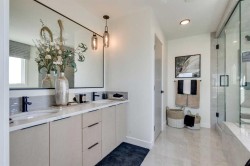Discover The Amber – a stunning blend of modern design and practical luxury. Built by a trusted builder with over 70 years of experience, this home showcases on-trend, designer-curated interior selections tailored for a home that feels personalized to you. Energy efficient and smart home features in each home. This home offers a side entrance and a main-floor bedroom with full bath, perfect for guests or family. The executive kitchen boasts built-in stainless steel appliances, gas cook top, waterfall island, and stylish pendant lighting. A separate spice kitchen includes a gas range, French door, and pantry shelving. The open-to-above great room features a gas fireplace and is flooded with natural light from abundant windows. Upstairs, relax in the spacious primary bedroom with a 5-piece ensuite. This energy-efficient home is Built Green certified and includes triple-pane windows, a high-efficiency furnace, and a solar chase for a solar-ready setup. With blower door testing that may be eligible for up to 25% mortgage insurance savings, plus an electric car charger rough-in, it’s designed for sustainable, future-forward living. Featuring smart home technology, this home includes a programmable thermostat, ring camera doorbell, smart front door lock, smart and motion-activated switches—all seamlessly controlled via an Amazon Alexa touchscreen hub.Photos are a representative.