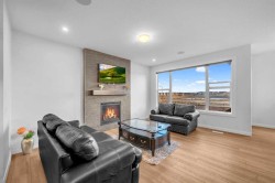 Welcome to this exceptional north-facing residence that seamlessly blends luxury, space, and thoughtful design, highlighted by, OVERSIZED TRIPLE garage with extended length, large enough to comfortably accommodate a LONG PICKUP TRUCK while still offering plenty of room for additional vehicles or storage, making it a true standout in today’s market. From the moment you step inside, the home impresses with soaring 9 ft ceilings on the main floor, upper level, and even the basement, creating a sense of brightness, openness, and sophistication across all levels. The heart of the home is the beautifully upgraded kitchen, featuring a striking waterfall granite oversized island that doubles as both a design centerpiece and a practical workspace, surrounded by granite countertops that extend throughout the entire house, including the kitchen backsplash and all bathrooms. Ceiling-height upgraded cabinets provide maximum storage while enhancing the elegant look, while the built-in appliance package, complete with a gas stove, makes this kitchen a dream for home chefs and entertainers alike. The open-concept design flows seamlessly into the living room, where a gas fireplace offers warmth and charm, complemented by built-in speakers that create a perfect setting for family movie nights, parties, or simply enjoying music in a relaxing environment. The main floor also offers incredible flexibility with a spacious den that can easily serve as a full bedroom, large enough to accommodate a king-size bed, making it ideal for guests, extended family members, or even as a private office space. Upstairs, the luxury continues with the rare feature of double master bedrooms, each offering its own ensuite for privacy and convenience, while the additional bedrooms are all generously sized with large windows and thoughtful layouts, ensuring comfort for every member of the household. The basement adds even more potential with a separate side entrance, legal-sized window, and rough-in plumbing, providing a perfect opportunity to develop a future legal suite for rental income, an additional living area for extended family, or a recreational space tailored to your lifestyle. Every detail in this home has been carefully chosen to combine beauty with function, from the granite finishes throughout to the upgraded cabinetry, built-in appliances, waterfall island, and the warmth of the gas fireplace. The north-facing orientation enhances the balance of natural light throughout the day, keeping the home bright yet energy-efficient. With its extended triple garage, high ceilings on all levels, versatile main floor den, gourmet kitchen with premium finishes, spacious double master bedrooms, and basement designed for future development, this home offers everything a modern family could want while also providing long-term value. It is a rare opportunity to own a property that not only delivers luxury and comfort today but also offers flexibility and potential for tomorrow.