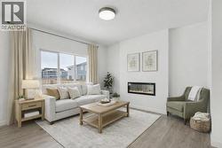 Welcome to Heartland in Cochrane – where luxury living meets small-town charm. Set against the backdrop of breathtaking mountain views, Heartland is one of Cochrane’s most sought-after communities, with its tree-lined streets, family-friendly parks, scenic pathways, and thoughtfully designed natural amenities.Crafted by Akash Homes, the Bedford offers an exceptional blend of elegance, comfort, and functionality. Step inside and be greeted by soaring 9’ ceilings on the main floor, rich laminate flooring, and gleaming quartz countertops that set the tone for refined living. The gourmet kitchen is a showpiece with expansive cabinetry, soft-close doors and drawers, an oversized island, and a convenient walk-through pantry—perfect for both entertaining and everyday life.The open-concept living area is anchored by a striking electric fireplace, framed by large windows that flood the space with natural light and showcase the surrounding views. Upstairs, unwind in the expansive bonus room, or retreat to your private sanctuary in the primary suite, featuring a spa-inspired ensuite and a walk-in closet designed to impress. Two additional bedrooms complete the upper level, providing space and flexibility for family or guests.In Heartland, you’re not just buying a home—you’re investing in a lifestyle defined by beauty, convenience, and community. PICTURES ARE OF ACTUAL HOME, SOME ARE VIRTUALLY STAGED. (id:27)