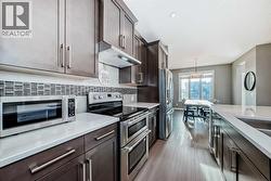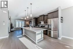 This impeccably maintained home is in immaculate condition and ready for a new family. Located in a new and rapidly growing neighborhood, the property offers excellent long-term value with additional commercial & residential developments planned nearby and a new public elementary school scheduled to open and Bow Valley High School is located in walking distance. Just in time for summer, this home features RV parking with a gate that opens, a fully fenced yard, a south-facing deck, and two large storage sheds—perfect for outdoor living and extra storage.Inside, you’ll find 9 ft ceilings, decorative feature walls, and a bright, open-concept main floor. The upgraded kitchen is a standout, offering shaker-style cabinetry, quartz countertops, stainless steel appliances including a double oven, a new kitchen hood fan and a large central island ideal for entertaining. Triple-pane windows and extra-tall interior doors enhance both comfort and modern appeal.The back entry includes a 2-piece powder room and built-in lockers, keeping daily life organized and functional.Upstairs, the spacious primary bedroom features a 5-piece ensuite with quartz counters, a corner soaker tub, separate shower, and a large walk-in closet. Two additional bedrooms, a full bathroom, and the convenience of upper-level laundry complete this floor.The fully finished lower level offers a fourth bedroom with walk-in closet, a full bathroom, a large recreation room, and ample storage space.Ideally located with easy access to Calgary and Banff, this home is perfect for families seeking comfort, space, and a thriving community. (id:27)