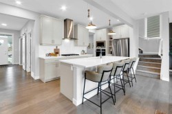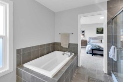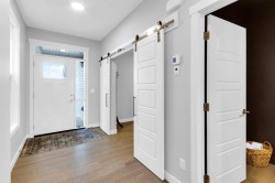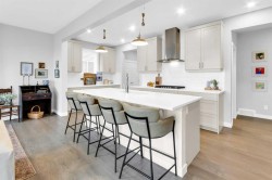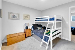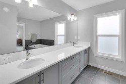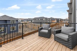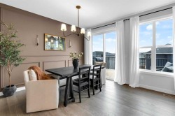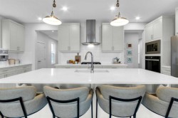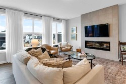 Located in the prestigious community of Rivercrest, this beautifully designed home offers nearly 3,500 sqft. of finished living space, thoughtfully crafted for both comfort and elevated everyday living. Flooded with natural light and positioned to capture stunning views of downtown Cochrane and mountain views to the west. This home features 3 spacious bedrooms on the upper floor plus a main-floor flex room, ideal as a private home office or 4th bedroom with the added versatility of a Murphy bed, along with a 1-bedroom suite on the lower level. The main level welcomes you with 9 ft ceilings, a spacious foyer and a seamless open-concept layout anchored by expansive windows and a large sliding patio door. The kitchen is both stylish and functional, featuring an expansive 8’ island, ample counter space, and built-in appliances, perfect for entertaining and everyday living. The living and dining areas are warmed by a cozy fireplace, creating an inviting atmosphere for gatherings and quiet evenings alike. The fully developed lower-level one-bedroom walk-out suite features 9 ft ceilings, a kitchenette, large windows, a bright open feel, beautiful ensuite bathroom, ample storage and a separate entrance, offering exceptional flexibility for extended family, guests, or as extra rental income. Upstairs, a centrally located bonus room provides the ideal space for family movie nights or a children’s play area. The primary retreat offers a serene escape, complete with a spa-inspired ensuite featuring double sinks, a tiled shower, and a soaker tub. For added convenience, the laundry room connects directly to the primary walk-in closet. Two additional bedrooms are thoughtfully positioned alongside a 5-piece bathroom with a separate sink area and a charming reading nook. Step outside to enjoy the evening sun and panoramic views of the town, surrounding hills, and mountain range from the oversized back deck. Set on a quiet street in a boutique community known for its scenic surroundings and future school site, Rivercrest offers a strong sense of neighbourhood and exceptional access to downtown Cochrane, Spray Lakes Recreation Centre, and an easy commute to Calgary.