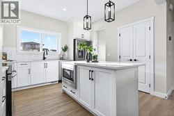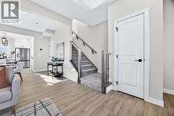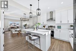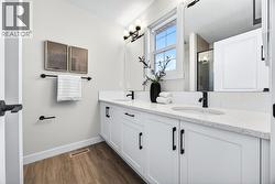 Welcome to this stunning, brand-new Genesis Builders duplex. The "Oscar" offers modern design, functional living, and exceptional future potential with basement suite rough-ins "legal suite subject to approval and permitting by the city/municipality", all complemented by a warm, inviting colour palette that creates a welcoming atmosphere throughout the home. Featuring 3 bedrooms and 2.5 bathrooms, this home is thoughtfully crafted and offers over 1400 sq ft. The main floor showcases a bright, sun-filled floorplan with 9' ceilings and a seamless open-concept layout, connecting the spacious living room, central dining area, and stylish kitchen. The kitchen is beautifully appointed with quartz countertops, two-toned cabinetry, a large central island, and a sleek stainless steel appliance package, complete with a gas line to the range. A convenient powder room completes the main level. Upstairs, the primary suite is a private retreat featuring a generous walk-in closet and a spa-inspired ensuite with his-and-hers sinks and an oversized shower. Two additional well-sized bedrooms, a full bathroom, and convenient upper-floor laundry complete the second level. The unfinished basement offers incredible flexibility with 9' ceilings, a separate SIDE ENTRANCE, and BASEMENT SUITE ROUGH INs, making it ideal for additional living space or future income potential. Outside, the backyard is a blank canvas, ready for your personal touch and offering the opportunity to build your dream garage. Located in the vibrant and family-friendly community of Fireside, this home offers the perfect balance of small-town charm and modern convenience. Fireside is known for its extensive pathway system, parks, playgrounds, and green spaces, ideal for walking, biking, and outdoor enjoyment. Residents love the easy access to schools, shops, restaurants, and everyday amenities, all just minutes away. With quick access to Highway 22 and Highway 1, commuting to Calgary or heading west to the mountains is effortless. *Taxes have not been assessed. Photos are representative of the same model. This property's colour palette is included in the pictures. RMS has been applied to the builder's construction drawings. (id:27)