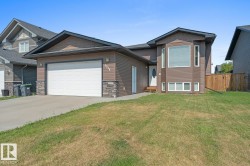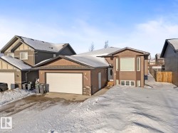 Fantastic FAMILY FRIENDLY neighbourhood! FULLY DEVELOPED 5 bedroom / 3 bathroom spacious BI-LEVEL home. Located in THE MEADOWS subdivision. A superb central location with Millenium Trail, kids park and shopping all within walking distance. MOVE IN READY HOME! Open floor plan with many sun filled windows for natural light! Main entry with access to the double attached and insulated garage. Hardwood floor, vaulted ceilings, gas fireplace in the livingroom + a large dining area. Cook friendly kitchen that includes all appliance as well. Kitchen with access to back deck and fully fenced backyard! Down the hallway are 3 good sized bedrooms (with hardwood floors too) and the main bathroom. Primary bedroom with walk in closet & ensuite with 2 sinks and a relaxing jet tub! Lower level with underslab heated floors-cozy for year round comfort! Family room is huge! Bedrooms #4 & #5, a full 4 piece bathroom, laundry area and a utility room round out this well designed family home! Large concrete driveway! A MUST SEE!