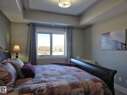 Ironwood Gates brings unmatched luxury, style & elegance to condo living in Drayton Valley! This 2 bed, 2 bath suite is 1141sqft with an open concept main living area that leads to the balcony overlooking open field and trees. The living room boasts a cozy gas fireplace! The kitchen is beautiful maple cabinetry, granite countertop and tile backsplash with wall mount canopy range hood. The primary bedroom is large with a walk-through closet and 4-piece bath featuring frameless glass shower w/ dual body massage! The second bedroom is also large with a walk-in closet situated right across from the main 4-piece bath. The unit has central A/C and 9 ft ceilings throughout! The building is secure with electronic security gates and perimeter fencing. Unit includes 2 parking stalls, 1 underground and 1 powered spot outside. Condo Fee includes heat, water/sewer, reserve fund, ext. maintenance janitorial. This condominium also has location going for it! Located at the end of a dead end street and close to shopping!