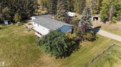 An exceptional opportunity to own 24 acres of prime land within the town of Drayton Valley. Located in the NW corner of town, this unique property offers convenient access to all local amenities! The adjoining 24 acres are also available for purchase, presenting a rare chance for expanded ownership or future development.(E4464817). Property is currently set up for horses, with cross-fencing & a variety of outbuildings including a 24’x26’ garage & a large quonset, ideal for storing machinery, RV’s, or other large items. The land is partially treed, offering privacy & a peaceful natural setting, along with picturesque city views at night, yet you could walk to Walmart! The residence is a well-maintained 1,250 sq ft bungalow, offering 6 bedrooms & 3 baths. The main floor is bright & spacious, w/ some updates. A large, south-facing covered deck provides the perfect space to enjoy warm Alberta evenings in a tranquil setting. This property is fully serviced & zoned R-ACG. Price INCLUDES any applicable GST.