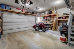 Inclusions: electric fireplace, garage shelving, window coverings, garage door opener and remote