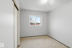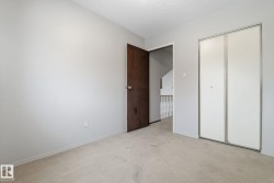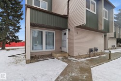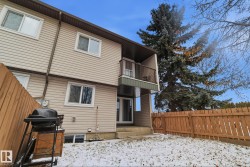 This end unit, with its sunny south-facing backyard, sits in one of the most sought-after spots in the Cimarron Chase complex, just off 23 Avenue. It’s move-in ready, with a main floor that includes a kitchen, eating nook, living room, dining room, and a handy two-piece bathroom. Upstairs features a primary bedroom with his-and-hers closets and a private balcony, plus two spacious bedrooms and a four-piece bath. The unfinished lower level is ready for your ideas. Extras include vinyl windows, newer exterior siding, and two parking stalls with plug-ins right out front. You’ll be close to Century Park LRT, bus stops, groceries, shopping, YMCA facilities, an elementary school, and a playground. (Photos show staged furniture and decor)